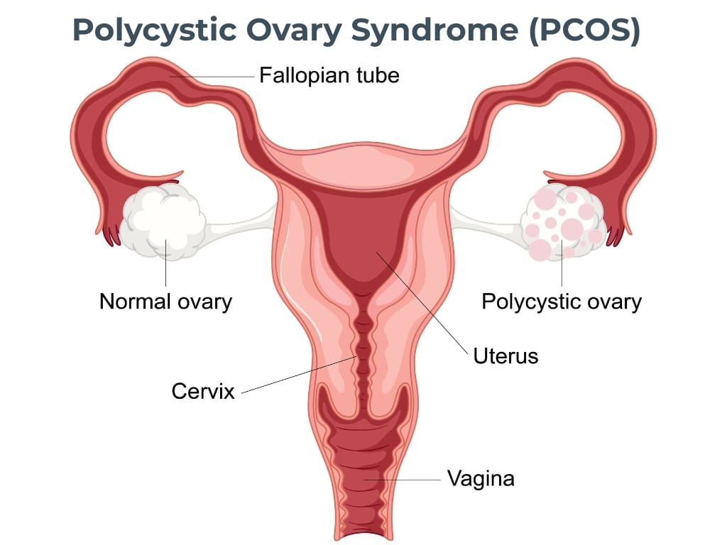 At a biological level, PCOS reflects a disruption in the normal functioning of the ovaries, driven primarily by hormonal imbalances and abnormal ovarian structure [4]. One of the defining features of PCOS is the presence of multiple small cysts – technically referred to as immature follicles – clustered around the periphery of the ovaries. These polycystic ovaries result from a failure of the follicles to mature and release eggs during the menstrual cycle, leading to irregular or absent ovulation [2,5].